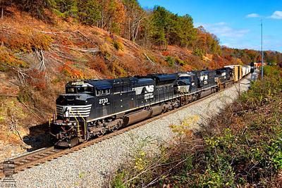 Norfolk Southern SD70M-2 puzzle, based on an original photo by Steve Hardin (photo copyright Steve Hardin -- used with permission). Photographed at Braswell, Georgia, November 20, 2018.