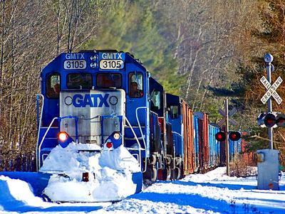 Pan Am Railways GP40 puzzle, based on an original photo by Jeff J. Bray (photo copyright Jeff J. Bray -- used with permission). Photographed at Bucksport, Maine, February 10, 2013.