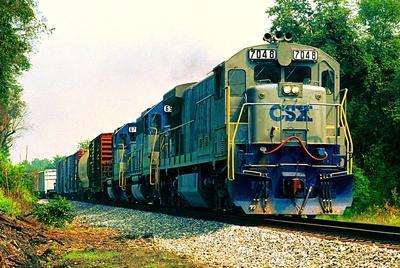 CSX Transportation (CSXT) C30-7 puzzle, based on an original photo by Ted Grumbine (photo copyright Ted Grumbine -- used with permission). Photographed at Joppatowne, Maryland, September 9, 1989.