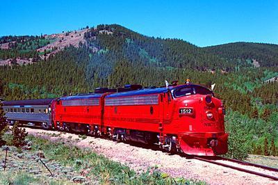 Wyoming and Colorado FP7 puzzle, based on an original photo by Steve Ellis (photo copyright Steve Ellis -- used with permission). Photographed at Albany, Wyoming, July, 1989.