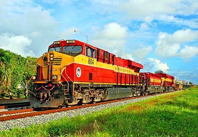 Florida East Coast Railroad (FEC) ES44C4 puzzle, based on an original photo by Bob Pickering (photo copyright Bob Pickering -- used with permission). Photographed at Aventura, Florida, August 23, 2019.
