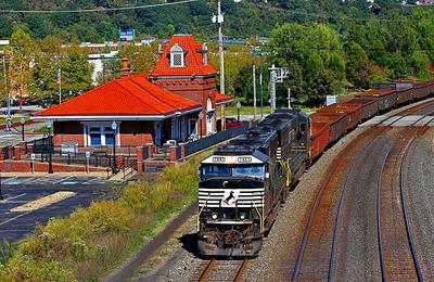 Norfolk Southern SD60E puzzle, based on an original photo by Bill Bores (photo copyright Bill Bores -- used with permission). Photographed at Homestead, Pennsylvania, October 10, 2019.