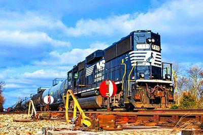 Norfolk Southern GP60 puzzle, based on an original photo by David Rohdenburg (photo copyright David Rohdenburg -- used with permission). Photographed at Evendale, Ohio, March 11, 2020.