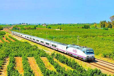 Renfe 252 puzzle, based on an original photo by Konstantin Davidov (photo copyright Konstantin Davidov -- used with permission). Photographed at Algemesi, Spain, May 18, 2018.