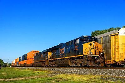 CSX Transportation (CSXT) ET44AH puzzle, based on an original photo by Rich Kaminsky (photo copyright Rich Kaminsky -- used with permission). Photographed at Berea, Ohio, August 20, 2020.