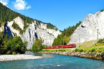 RhB - Rhätische Bahn Ge4/4ii puzzle, based on an original photo by James Stearn (photo copyright James Stearn -- used with permission). Photographed at Versam Safien, Switzerland, August 8, 2020.