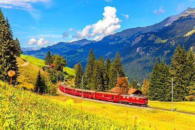 RhB - Rhätische Bahn Ge 4/4 I puzzle, based on an original photo by Axel Bozier (photo copyright Axel Bozier -- used with permission). Photographed at Klosters, Switzerland, September 11, 2020.