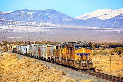 Union Pacific ES44AC puzzle, based on an original photo by Steve Ellis (photo copyright Steve Ellis -- used with permission). Photographed at Faust, Utah, December 19, 2020.