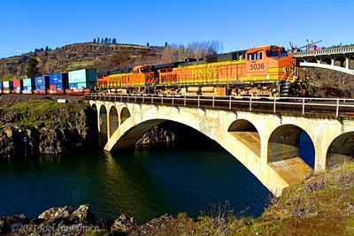 BNSF Railway Dash 9-44CW puzzle, based on an original photo by Joel Hawthorn (photo copyright Joel Hawthorn -- used with permission). Photographed at Lyle, Washington, February 10, 2021.