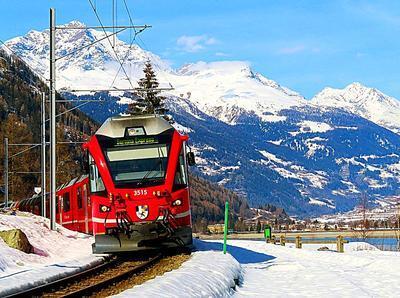 RhB - Rhätische Bahn ABe 8/12 puzzle, based on an original photo by Bruno Dietliker (photo copyright Bruno Dietliker -- used with permission). Photographed at Poschiavo, Switzerland, February 19, 2021.