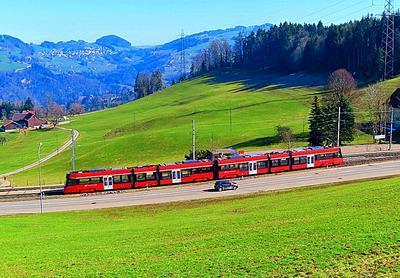 Appenzeller Bahnen (Switzerland) ABe 8/12 puzzle, based on an original photo by Bruno Dietliker (photo copyright Bruno Dietliker -- used with permission). Photographed at St. Gallen, Switzerland, March 2, 2021.