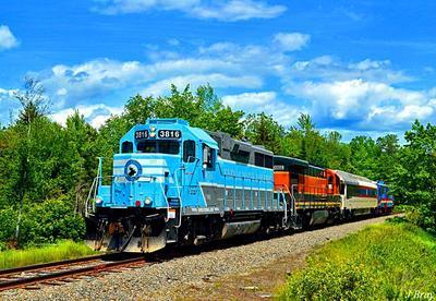 Central Maine and Quebec Railway GP38-3 puzzle, based on an original photo by Jeff J. Bray (photo copyright Jeff J. Bray -- used with permission). Photographed at Stockton Springs, Maine, June 15, 2017.