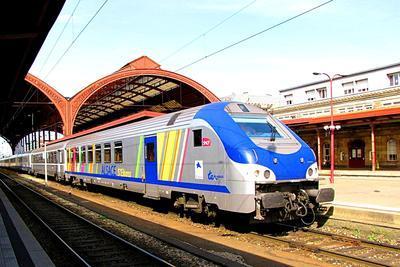 SNCF Bombardier puzzle, based on an original photo by Michael Sender (photo copyright Michael Sender -- used with permission). Photographed at Strasbourg, France, May 23, 2009.