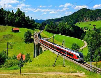 Südostbahn (SOB), Switzerland RABe 526 puzzle, based on an original photo by Brian Stephenson (photo copyright Brian Stephenson -- used with permission). Photographed at Degersheim, Switzerland, July 4, 2017.