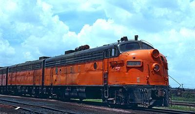 Milwaukee Road FP7 puzzle, based on an original photo by Marty Bernard (photo copyright Marty Bernard -- used with permission). Photographed at Bensenville, Illinois, June 24, 1977.