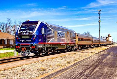 Amtrak SC-44 puzzle, based on an original photo by Sid Vaught (photo copyright Sid Vaught -- used with permission). Photographed at Effingham, Illinois, April 20, 2018.