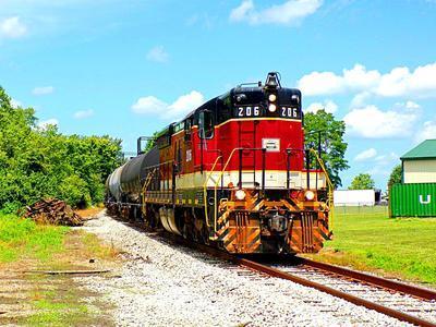 Indiana Eastern Railroad SD9 puzzle, based on an original photo by David Rohdenburg (photo copyright David Rohdenburg -- used with permission). Photographed at Peoria, Indiana, July 18, 2019.