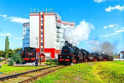 Russian Railways 0-10-0 puzzle, based on an original photo by Parker Wilson (photo copyright Parker Wilson -- used with permission). Photographed at Scherbinka, Russia, August 24, 2019.