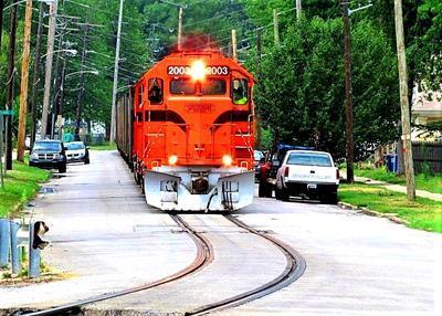 Chicago SouthShore & South Bend Railroad GP38-2 puzzle, based on an original photo by George M. Stupar (photo copyright George M. Stupar -- used with permission). Photographed at Michigan City, Indiana, July 27, 2012.