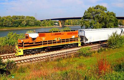 Illinois & Midland Railroad GP38-2 puzzle, based on an original photo by Craig McGregor (photo copyright Craig McGregor -- used with permission). Photographed at Pekin, Illinois, October 9, 2020.
