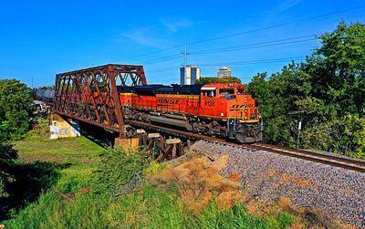 BNSF Railway SD70ACe puzzle, based on an original photo by Mike Bates (photo copyright Mike Bates -- used with permission). Photographed at Dallas, Texas, October 16, 2020.