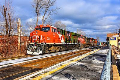 Canadian National Railway ET44AC puzzle, based on an original photo by Nicolas Houde (photo copyright Nicolas Houde -- used with permission). Photographed at Saint-Lambert, Quebec, December 27, 2020.