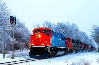 Canadian National Railway SD70M-2 puzzle, based on an original photo by Robert Jordan (photo copyright Robert Jordan -- used with permission). Photographed at Cherry Valley, Illinois, January 4, 2021.
