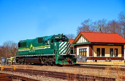 Illinois Railway SD50 puzzle, based on an original photo by Robert Jordan (photo copyright Robert Jordan -- used with permission). Photographed at Oregon, Illinois, March 19, 2021.