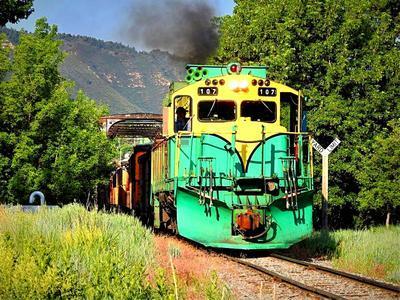 Durango & Silverton Narrow Gauge Railroad DL535E puzzle, based on an original photo by Mike Stupar (photo copyright Mike Stupar -- used with permission). Photographed at Durango, Colorado, June 19, 2021.