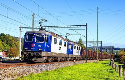 Re 421 puzzle, based on an original photo by Georg Trüb (photo copyright Georg Trüb -- used with permission). Photographed at Winterthur, Switzerland, September 20, 2022.