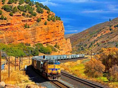 Union Pacific AC4400CW-CTE puzzle, based on an original photo by Robert Palmer (photo copyright Robert Palmer -- used with permission). Photographed at Echo Creek Canyon, Utah, October 9, 2009.