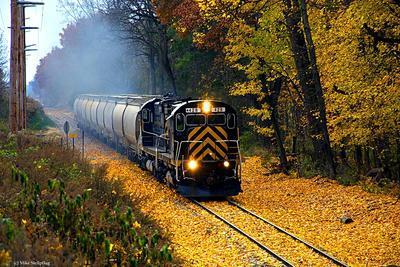 Livonia, Avon, & Lakeville C425 puzzle, based on an original photo by Mike Stellpflug (photo copyright Mike Stellpflug -- used with permission). Photographed at Rush, New York, November 12, 2018.