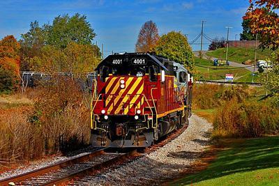 Allegheny Valley Railroad GP40-3 puzzle, based on an original photo by Bill Bores (photo copyright Bill Bores -- used with permission). Photographed at Eighty Four, Pennsylvania, October 15, 2019.