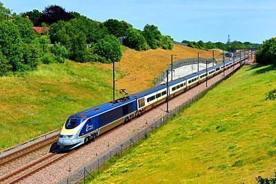 Eurostar Class 373 puzzle, based on an original photo by Brian Stephenson (photo copyright Brian Stephenson -- used with permission). Photographed at Lenham Heath, Kent, United Kingdom, June 2, 2020.