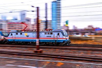 Amtrak ACS-64 puzzle, based on an original photo by Robert L. Sartain (photo copyright Robert L. Sartain -- used with permission). Photographed at Philadelphia, Pennsylvania, January 1, 2022.