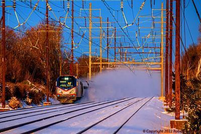 Amtrak ACS-64 puzzle, based on an original photo by Robert L. Sartain (photo copyright Robert L. Sartain -- used with permission). Photographed at Norwood, Pennsylvania, January 29, 2022.