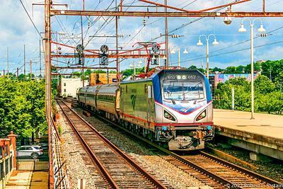 Amtrak ACS-64 puzzle, based on an original photo by Robert L. Sartain (photo copyright Robert L. Sartain -- used with permission). Photographed at Wilmington, Delaware, June 9, 2022.