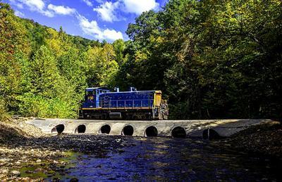 Beech Mountain Railroad SW1500 puzzle, based on an original photo by Matt Thomas (photo copyright Matt Thomas -- used with permission). Photographed at Palace Valley, West Virginia, October 4, 2023.