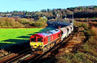 DB Cargo UK 66 puzzle, based on an original photo by Robert Sherwood (photo copyright Robert Sherwood -- used with permission). Photographed at Newton Abbot, United Kingdom, January 6, 2024.