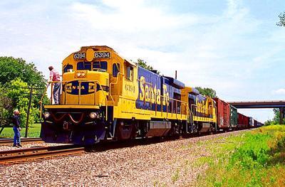 Atchison, Topeka & Santa Fe (ATSF) B23-7 puzzle, based on an original photo by Craig McGregor (photo copyright Craig McGregor -- used with permission). Photographed at Edelstein, Illinois, June, 1999.