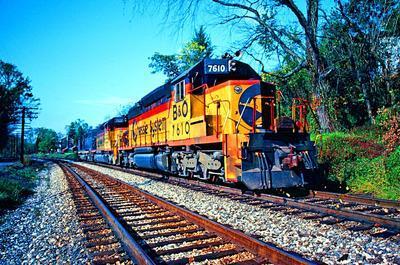 Baltimore & Ohio (B&O) SD40-2 puzzle, based on an original photo by Ted Grumbine (photo copyright Ted Grumbine -- used with permission). Photographed at Lander, Maryland, October 21, 1984.