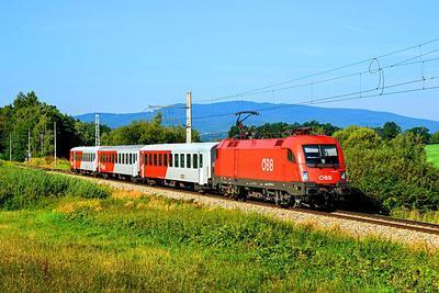 Austria Federal Railways (ÖBB) 1116 puzzle, based on an original photo by Jaroslav Dvorak (photo copyright Jaroslav Dvorak -- used with permission). Photographed at Kamenny Ujezd, Czech Republic, August 30, 2024.