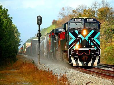 Florida East Coast Railroad (FEC) ES44C4 puzzle, based on an original photo by Bob Pickering (photo copyright Bob Pickering -- used with permission). Photographed at Bunnell, Florida, December 13, 2024.