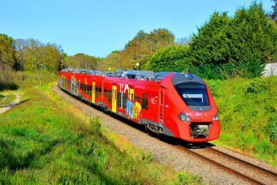 SNCF Alstom B 83500 Régiolis puzzle, based on an original photo by Gerard Meilley (photo copyright Gerard Meilley -- used with permission). Photographed at Pibrac (Haute Garonne), France, April 14, 2021.