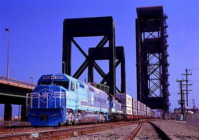Burlington Northern Santa Fe SDP40F puzzle, based on an original photo by Joe Blackwell (photo copyright Joe Blackwell -- used with permission). Photographed at Wilmington, California, August, 2002.