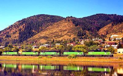 Burlington Northern Railroad SD40-2 puzzle, based on an original photo by Robert Jordan (photo copyright Robert Jordan -- used with permission). Photographed at Palmer Lake, Colorado, July, 1991.