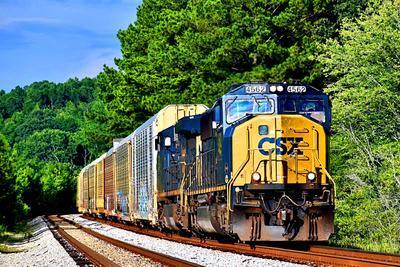 CSX Transportation (CSXT) SD70MAC puzzle, based on an original photo by Brandon Kirk (photo copyright Brandon Kirk -- used with permission). Photographed at Broughton, Alabama, July 24, 2025.