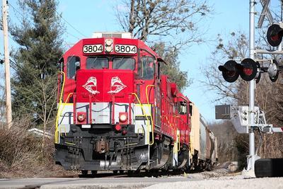 RJ Corman GP38-2 puzzle, based on an original photo by Joe Nugent (photo copyright Joe Nugent -- used with permission). Photographed at Versailles, Kentucky, February 3, 2016.