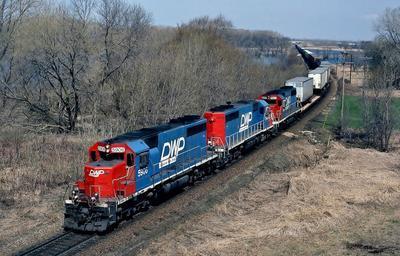 Duluth, Winnipeg & Pacific Railway SD40 puzzle, based on an original photo by Eric Burnham (photo copyright Eric Burnham -- used with permission). Photographed at La Crosse, Wisconsin, April 25, 1993.