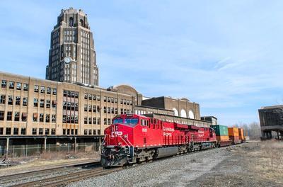 Canadian Pacific Railway ES44AC puzzle, based on an original photo by Joseph Cermak (photo copyright Joseph Cermak -- used with permission). Photographed at Buffalo, New York, March 26, 2016.